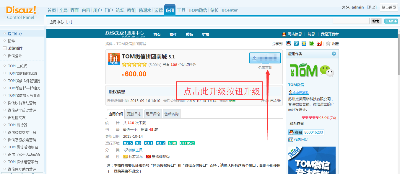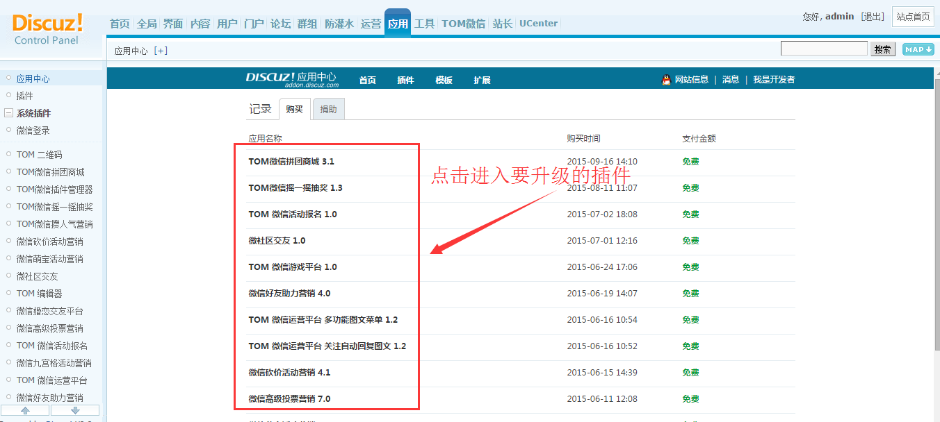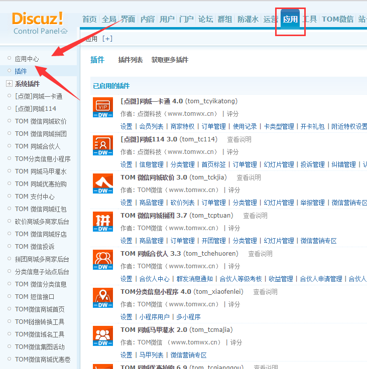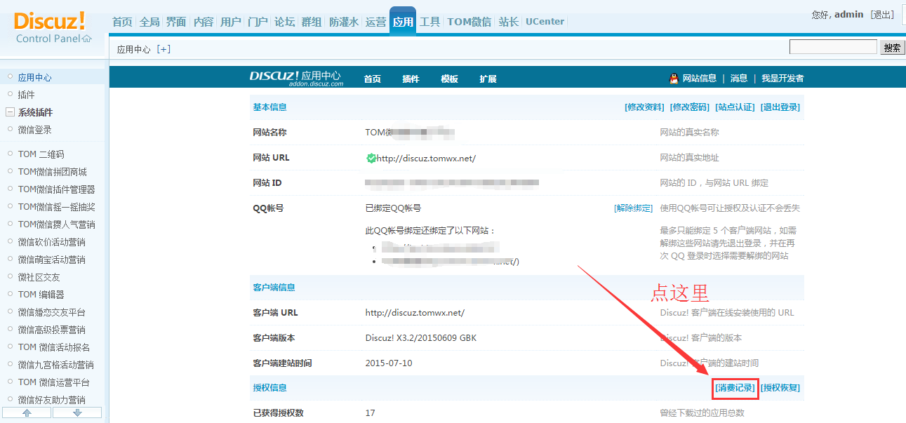 第一步:論壇后臺進入應(yīng)用中心,點擊網(wǎng)站信息